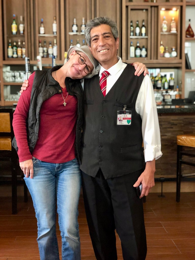 Made it back to my room and ordered yogurt, granola and banana (which weren’t on the menu) – thinking they wouldn’t do that for a dinner room service. I was so grateful when Jaime delivered my special order with a smile, that I started crying again. He offered to give me a hug, which I gladly accepted and said anything I need, just give them a ring.