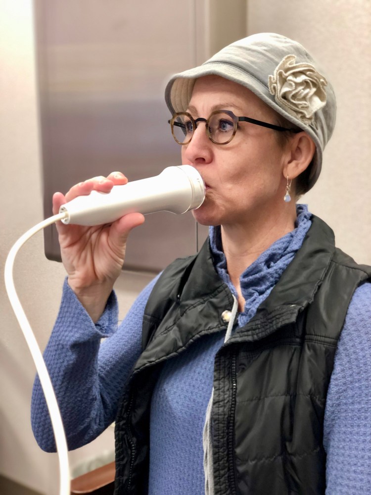 The specialist found no signs of vocal cord dysfunction, which I’ve twice been diagnosed with (and done all the vocal exercises for) as the cause of my chronic cough. Next, a closer look at my lungs and chest muscles.
