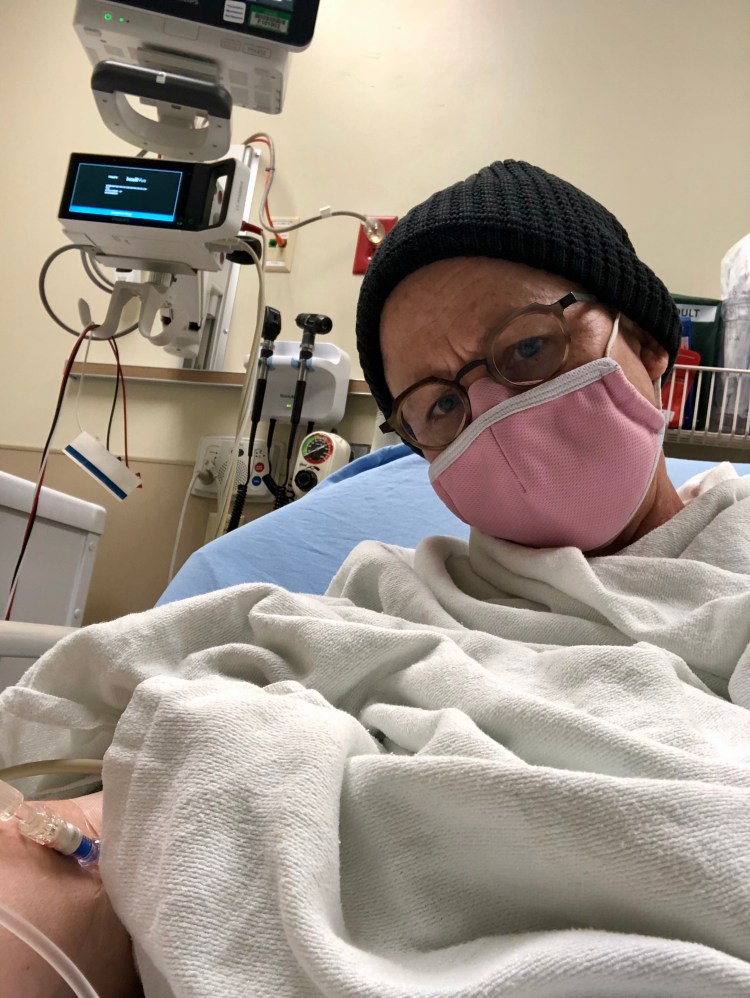 I started to share my story (funny for someone who has devoted a career to storytelling) online through social media when I was in the hospital for plasmapheresis. For those who don’t know, my very non-doctor description is that it’s like an ol’ fashioned blood-letting. They thread two small tubes through your neck into your chest. Every other day, your blood is circulated through a machine – and cleaned. It’s wild, wild stuff. I was in the hospital 10 days (that’s a hefty bill!), and I left in a wheelchair bawling my brains out because the treatment failed and for me, the most maddening and devastating moments are when I get to the end of a line.